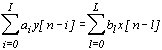где x[n] - входная выборка, y[n] - выходная выборка,