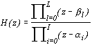 Многочлены стоящие в числителе и знаменателе этого выражения можно представить в виде произведения и переписать передаточную функцию линейного цифрового фильтра (2.4) в следующем виде