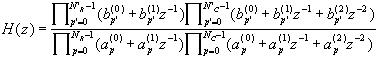 где числитель и знаменатель передаточной функции представлены в виде произведений многочленов первой и второй степени с действительными коэфициентами относительно переменной z; параметры