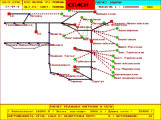 Пример использования Системы Проектирования и Анализа Сетей при расчете системы магистральных газопроводов.