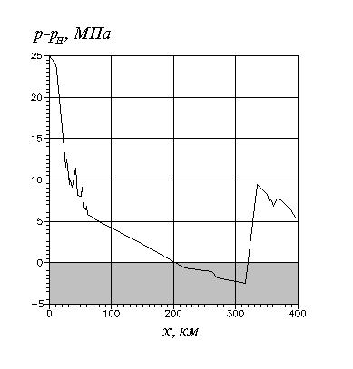 Номинальный стационарный режим работы. Избыточное давление газа в морском участке трубопровода по отношению к давлению окружающей воды |